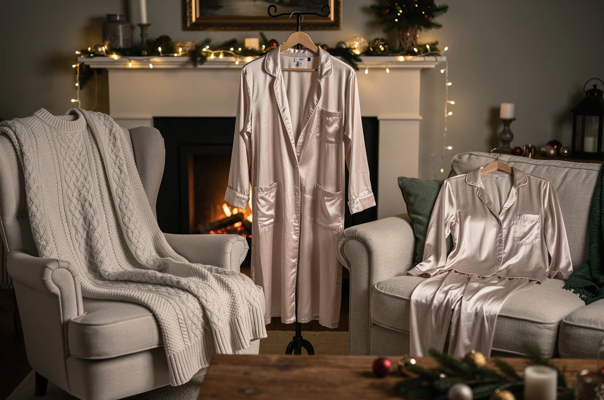 Ajouter un pull jacquard vintage sur une robe fluide, compléter un pantalon en velours côtelé avec un haut en maille brillante ou enfiler par-dessus un pyjama de noël un kimono satiné offre immédiatement une dimension ludique et raffinée à la tenue. Oser les mélanges raffinés valorise l’ensemble de votre look cosy.